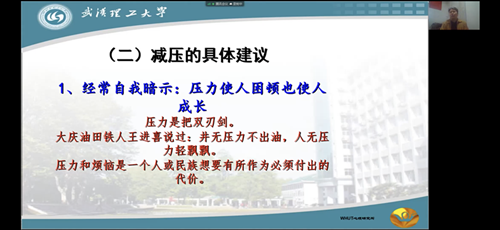 为关爱离退休教职工的身心健康,舒缓老同志疫情持续防控之下的压力情绪,提高活跃在一线与老同志直接沟通交流的片区信息联络员的业务素养及水平,2022年3月31日上午,离退休工作处东院办公室特邀武汉理工大学心理健康与生涯发展研究所所长雷五明老师在东院党员活动室作了题为“疫情持续防控之下老年人的压力情绪管理及心理养生”的专题健康讲座。