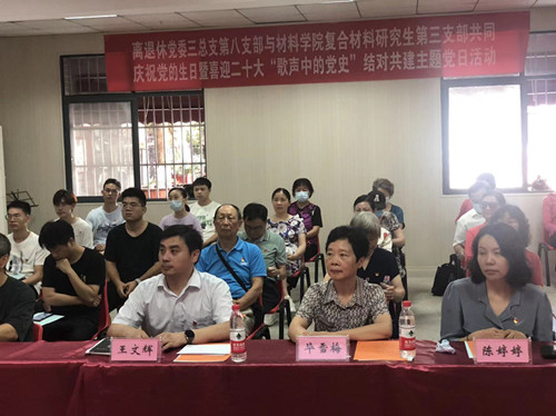 为了庆祝党的101岁华诞,离退休党委三总支第八党支部联合材料学院复合材料研究生第三党支部在东院老年活动中心多功能厅举办了以“歌声中的党史”为主题的支部共建活动。活动特邀离退休党委王文辉书记、离退休工作部毕雪梅副部长出席,复合材料研究生第三党支部赵明明同志担任本次活动主持人。