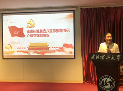 本次活动共分为五项。第一项由陈晓江老师带领全体党员重温了入党誓词,号召大家牢记初心、不忘使命。第二项,由离退休党委王文辉书记为本次活动致辞,王书记高度肯定了本次支部结对共建活动。他指出,本次活动体现了老党员对年轻党员的关怀和鼓励,让革命精神薪火传承。第三项分别由离退休三总支八支部张青书记和复合材料研究生第三党支部周子维书记为大家介绍党支部情况。