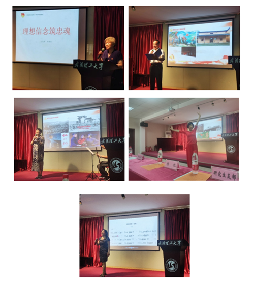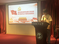 进入社会主义现代化建设时期,年轻的党员也有话说。复合材料研究生第三党支部的党文生介绍了科技兴国的成果——新材料前沿的应用。复合材料研究生第三党支部的党员们朗诵了退休八支部杨希武老师原创诗歌《我们为什么喊你万岁》。