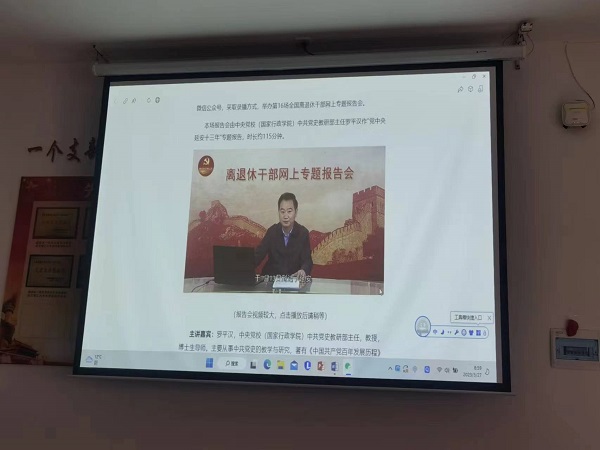 一总支组织收看“党中央延安十三年”专题报告2023-03-28 11:05:00 来源:离退休工作处西院办公室3月27日上午,离退休一总支在职党员支部全体党员在西院老年活动中心党员活动室集中收看了中央党校(国家行政学院)中共党史教研部主任罗平汉关于“党中央延安十三年”的专题报告。