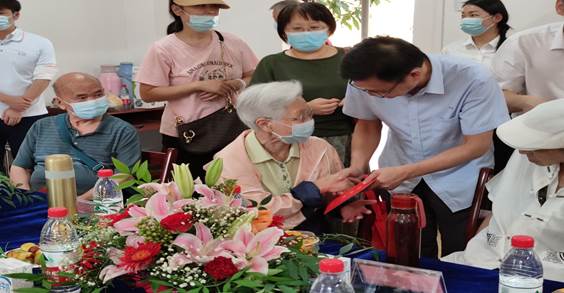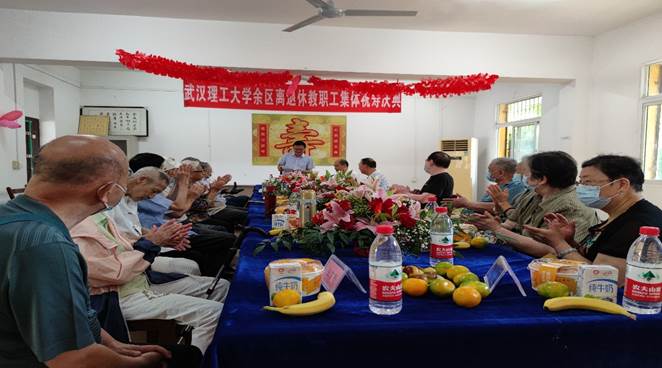 离退休工作部(余区)举办集体祝寿活动2022-09-30 16:59:00 来源:离退休工作处余区办公室丹桂飘香、金秋艳阳,在重阳节来临之际,为弘扬中华民族尊老、敬老、爱老的传统美德, 9月30日下午,离退休工作部(余区)联合泰康之家楚园为余家头校区80岁、90岁、95岁的19位老同志举办了集体祝寿活动。 祝寿仪式由离退休二党总支书记吴小春主持,离退休工作部部长唐昌飞向各位老寿星献上了诚挚的祝福,祝愿各位寿星身体健康、家庭幸福! 随着欢快的生日快乐歌声响起,交通与物流工程学院的青年志愿者们为各位寿星齐声献唱了《我的祖国》等多首祝福歌曲,老同志们被现场情绪感染,回忆起激情燃烧的岁月不禁大声合唱起来,把现场的气氛推向高潮。 艾棣辉、许启荣、梁用宾、陆信等老寿星纷纷发言,对国家的繁荣富强和学校的高速发展表达了由衷的祝愿,也对学校的关怀和离退休工作部(处)帮助表达诚挚的感谢;大家相约在不久的未来共同迎接期颐之约。 在“生日快乐”的祝福歌中,唐昌飞部长、吴小春副部长为现场的寿星们送上祝福的红包,泰康之家楚园也给在座的老人送上了公益大礼包共祝寿诞。
