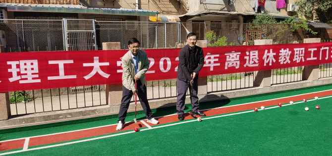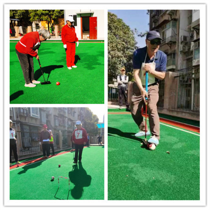 离退休工作部部长唐昌飞、离退休党委书记王文辉共同开球。比赛分成西院、余区、东院三个代表队循环进行。赛场上,队员们英姿飒爽,个个情绪高涨,精神焕发,展现了老同志们的良好精神风貌。队员们两两一组,进行角逐。各方代表弯腰握杆目视前方,沉着冷静,抬手挥杆,击球利落果断。送球、击球、过门,精彩纷呈。现场时而屏息以待,当球精准进门,又掌声不绝,一片欢呼。